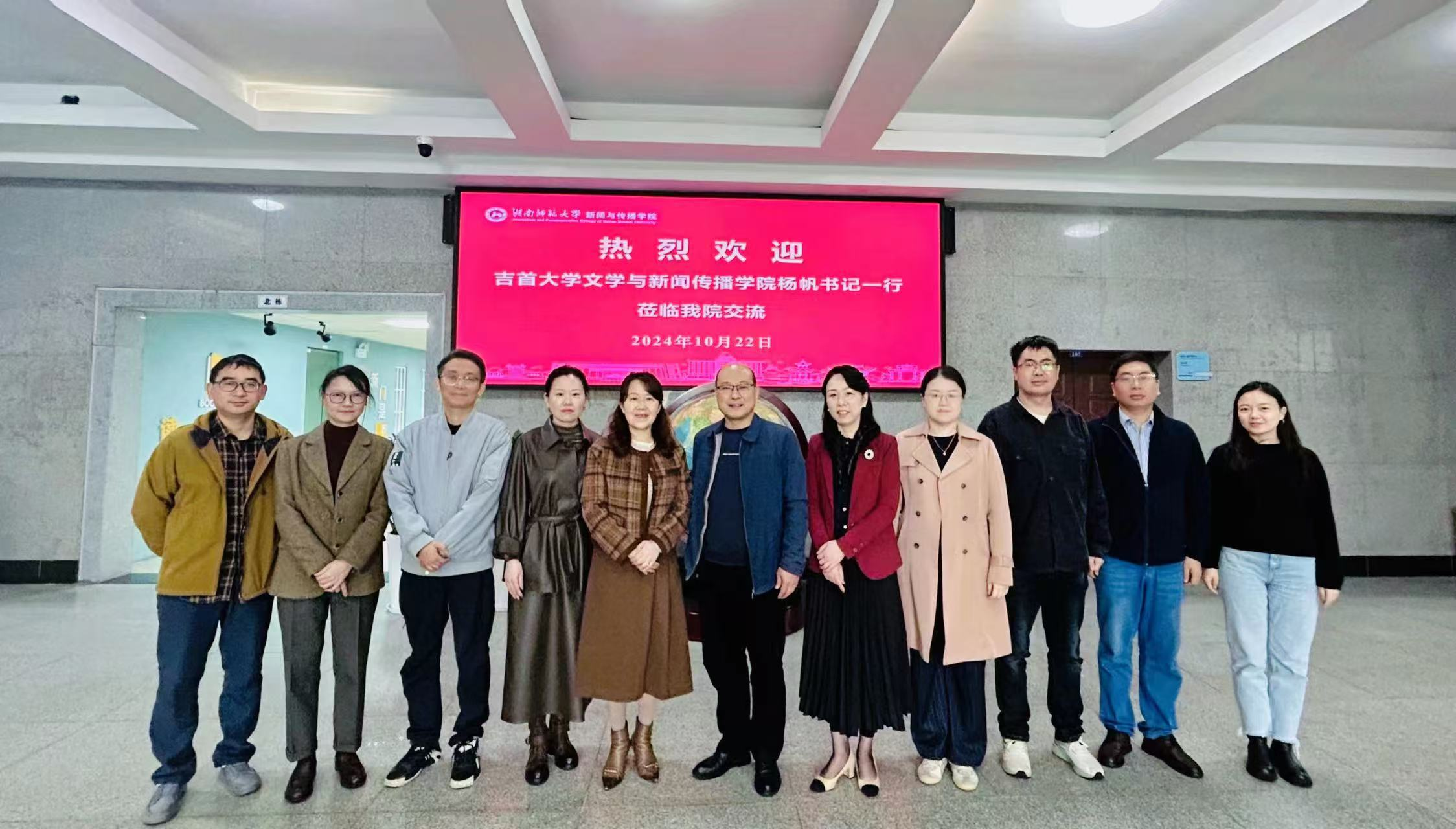 (通讯员 王作剩)为深入探索拔尖创新人才培养新途径,切实提升学院本科拔尖创新人才培养质量,10月22日,文学与新闻传播学院赴湖南师范大学调研交流学习。院党委书记杨帆、副院长罗琼、汉语言文学(师范)专业主任田泥、汉语言文学专业主任彭书跃、网络与新媒体专业主任张冀、新闻学专业主任王作剩,参加调研交流学习活动。